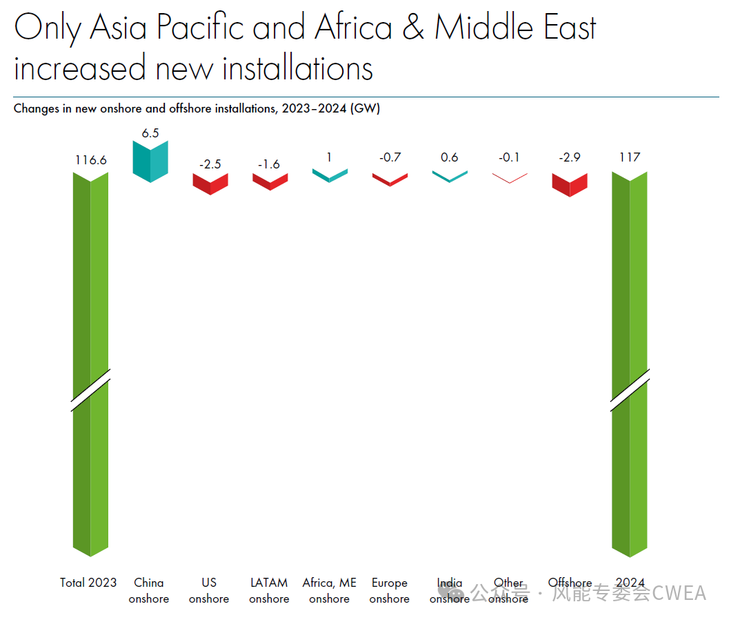 2025年4月23日,全球风能理事会(GWEC)在伦敦发布的《2025全球风能报告》显示,2024年是新增装机创纪录的一年,全球新增风电并网装机容量为117GW。