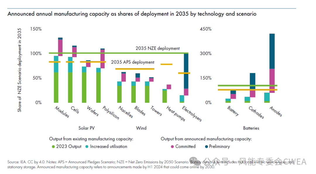 去年,拍卖和其他采购机制中标的陆上风电总量翻了一番(不包括中国)。在欧洲,中标的陆上风电总量达到17 GW,比2023年增加了24%,这主要是由于德国中标的陆上风电容量达到11 GW,比上一年高出72%。通过正确的政策框架,特别是改进许可并建立更好的拍卖模式,利用双边差价合约等工具降低投资者风险,风电的部署会进一步加速。
