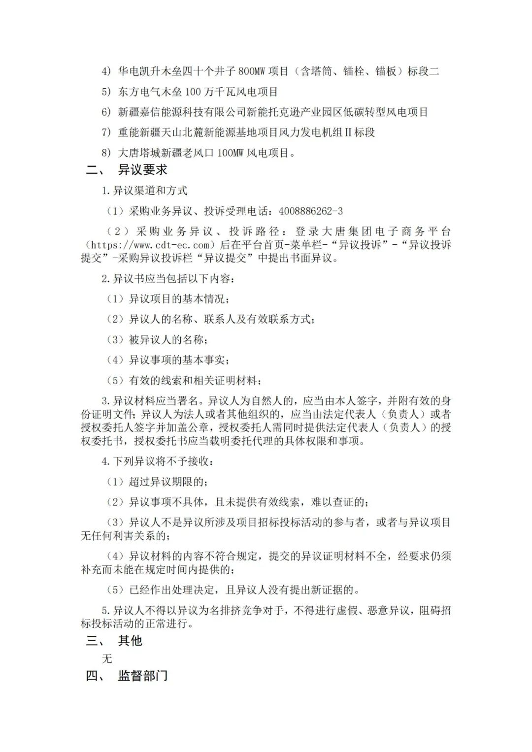 大唐吉林长春二热退城进郊配套100万千瓦扶余风电项目位于吉林省长春市,项目分为两个场区,每个场区500MW,总容量1000MW,各场区容量、总容量不允许上下浮动,8.0MW≤单机容量≤8.5WM,允许不超过4台机组降容运行;不接受混排;可用机位点120个;叶轮直径≥230m,叶片必须采用碳纤维技术,轮毂高度166m;塔筒型式:钢混塔。交货日期:计划2026年5月30日前风电机组首套交货,2026年10月20日之前全部交货完毕,具体交货日期以项目单位要求为准。