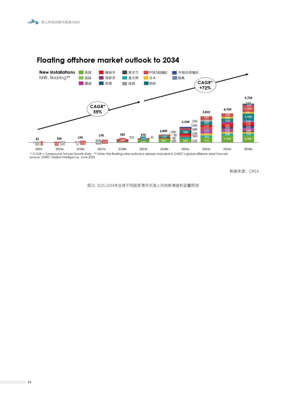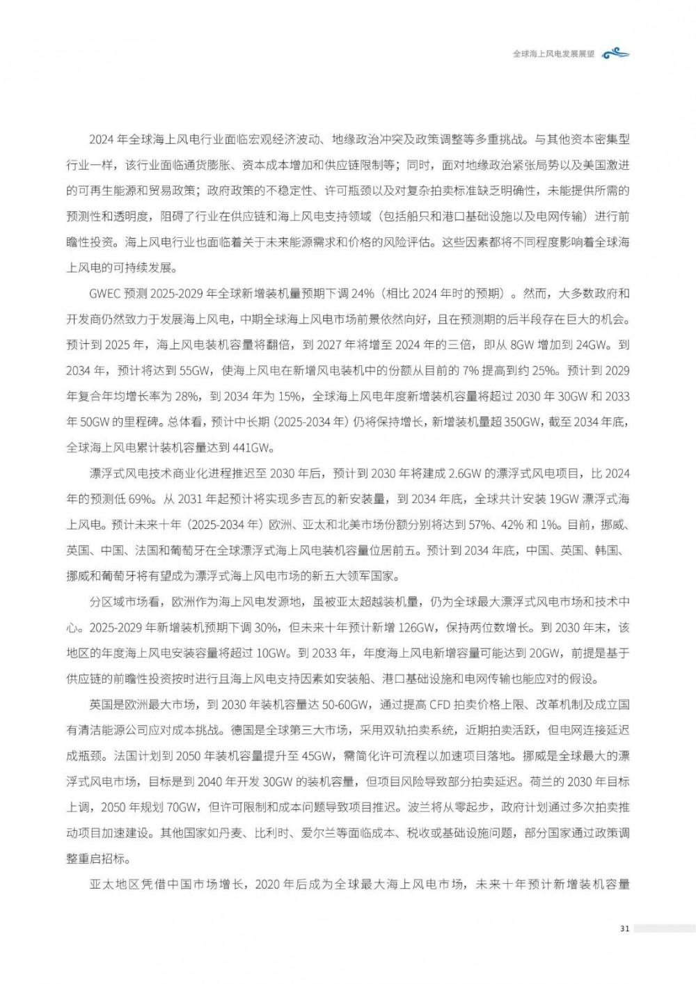 总体看,预计中长期(2025-2034年)仍将保持增长,新增装机量超350GW, 截至2034年底, 全球海上风电累计装机容量达到441GW。