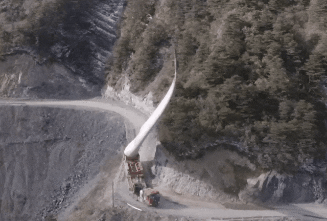 道路条件成为了一大制约因素。许多风电场位于偏远山区或沿海地区,这些地区的道路往往狭窄、崎岖,甚至存在急转弯和陡坡。风电叶片的超长尺寸使得车辆在行驶过程中难以转弯和通过狭窄路段,稍有不慎就可能导致叶片与路边障碍物发生碰撞,造成严重损失。