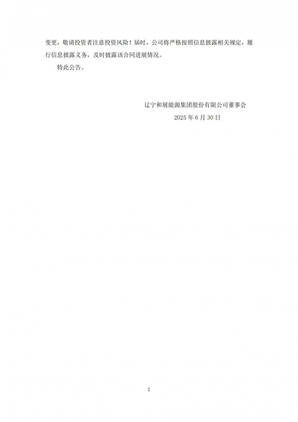 7月1日,辽宁和展能源集团股份有限公司发布关于全资子公司签订钢混塔架销售合同的自愿性信息披露公告。