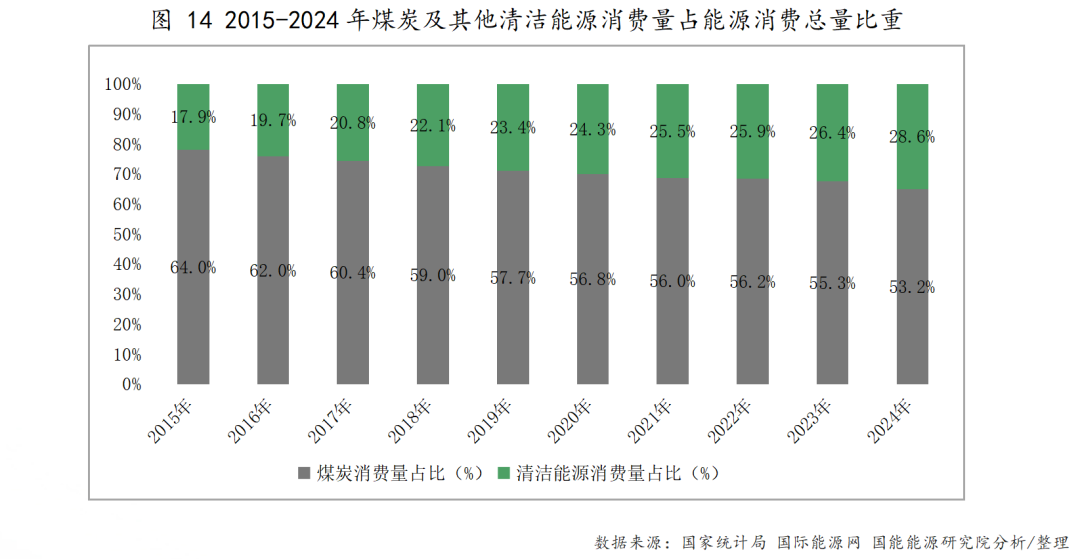 其中,煤炭消费量占能源消费总量比重为53.2%,比上年下降1.6%;天然气、水电、核电、风电、太阳能发电等清洁能源消费量占能源消费总量比重为28.6%,上升2.2%。