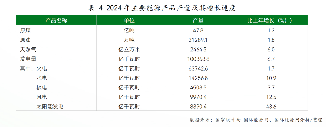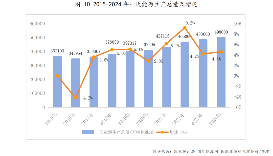 在能源生产及结构方面,据国家统计局发布的《2024年国民经济和社会发展统计公报》显示,2024年一次能源生产总量49.8亿吨标准煤,比上年增长4.6%。