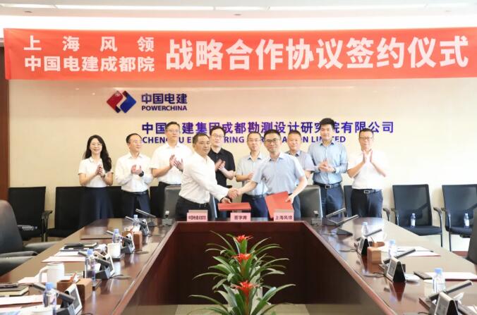 2025年7月7日上午,上海风领新能源有限公司(以下简称“风领新能源”)与中国电建集团成都勘测设计研究院有限公司(以下简称“中国电建成都院”)战略合作协议签约仪式在成都举行。中国电建成都院党委书记、董事长何彦锋,党委委员、副总经理鞠其凤,副总经理侯彦硕;风领新能源董事长孙羽、联席总裁申超、副总经理王昌、董事长助理伊高乐等双方领导共同出席仪式。