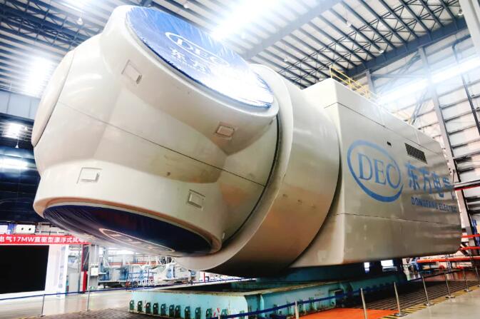 7月10日,由东方电气集团与中国华能联合研制的全球单机功率和风轮直径最大的17兆瓦直驱型漂浮式海上风电机组在福建省福清市顺利下线,标志着我国在海上风电装备制造领域取得新的突破,为我国海上风电走向深远海提供新的技术支撑。