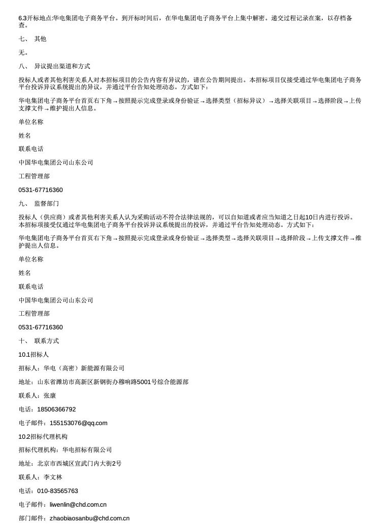两个项目都分两个标段进行招标。山东华电潍坊高密大牟家212.5MW风电项目主体施工总承包标段一为11台风电机组设备及建安工程,标段二为23台风电机组设备及建安工程。