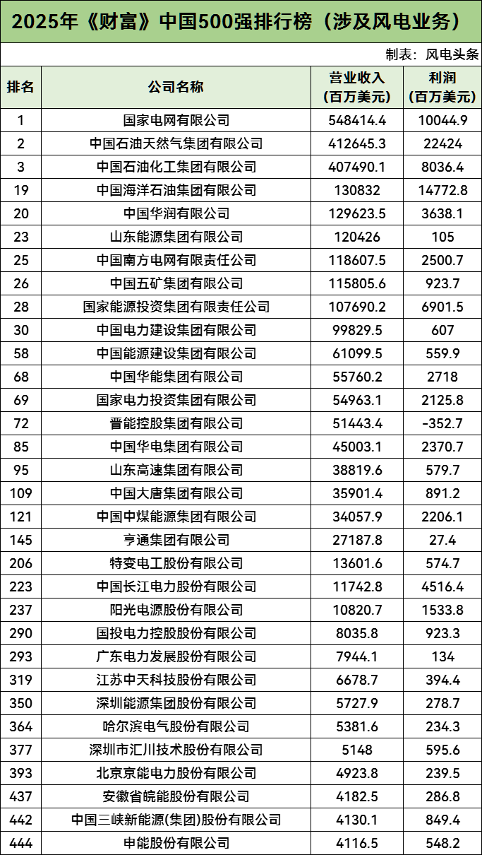 风电头条通过梳理,2025年《财富》中国500强榜单中,共有36家风电相关企业入榜。其中风电整机商有4家,涉及风电业务的企业有32家。