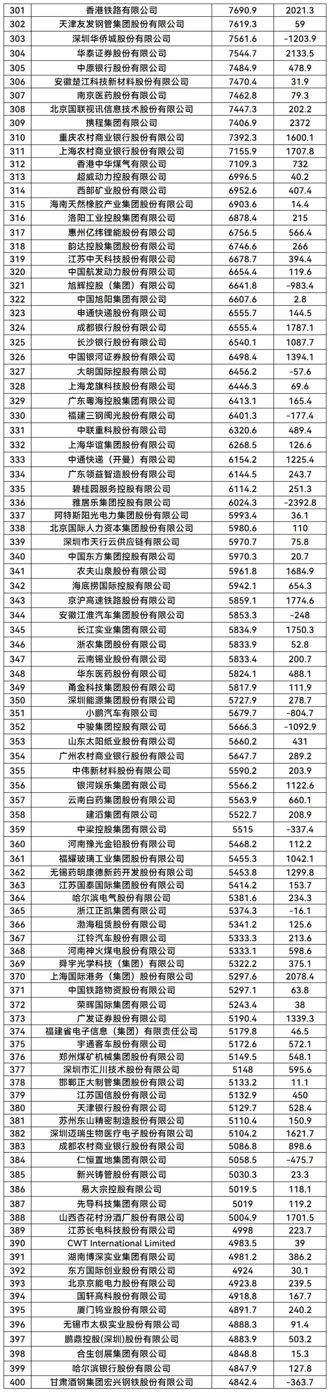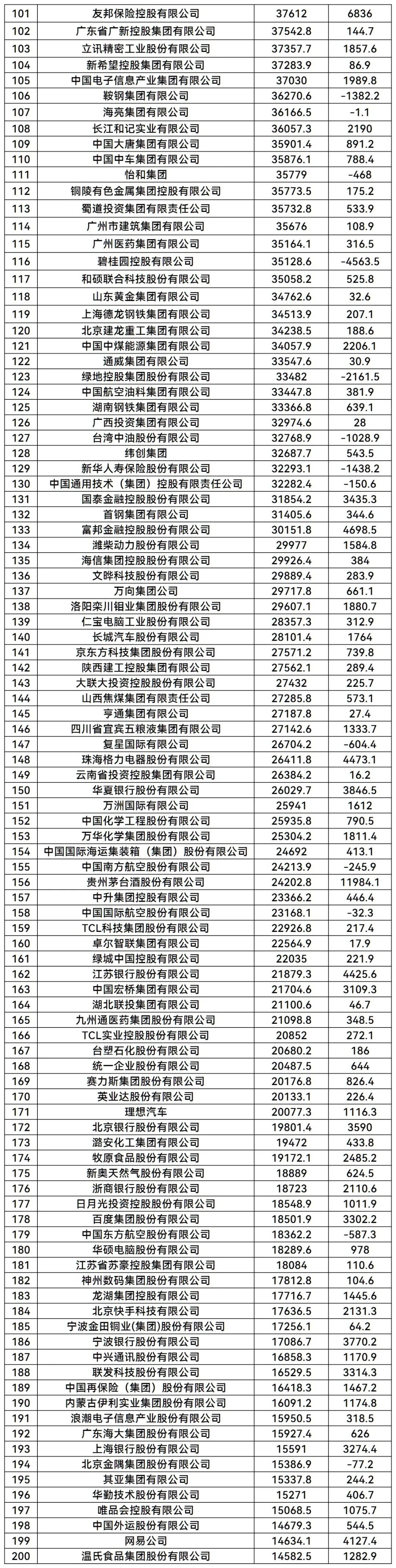 完整榜单如下: