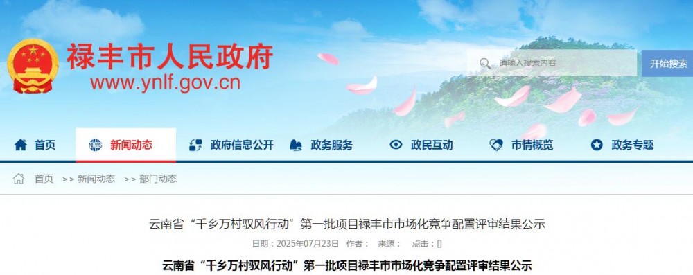 7月23日,云南省“千乡万村驭风行动”第一批项目禄丰市市场化竞争配置评审结果公示。