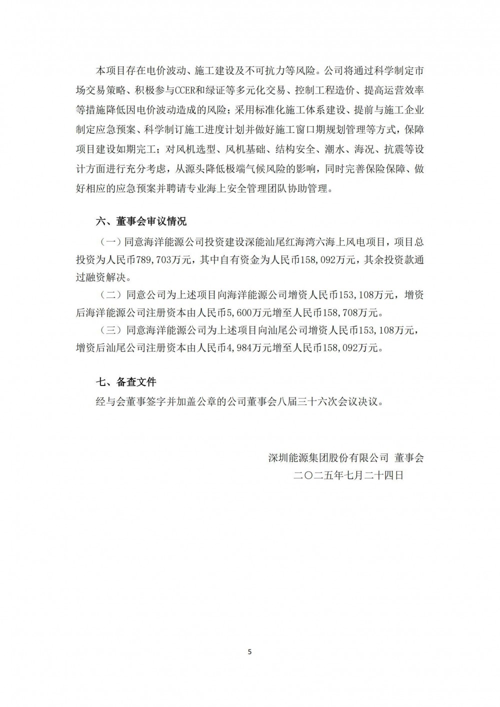 7月24日,深圳能源集团股份有限公司发布关于投资建设汕尾红海湾六海上风电项目的公告。