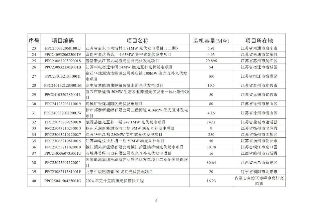 2025年6月,全国新增建档立卡新能源发电(不含户用光伏)项目共5236个,其中风电项目55个,光伏发电项目5150个(集中式光伏发电项目119个,工商业分布式光伏发电项目5031个),生物质发电项目31个。风电、集中式光伏发电、生物质发电项目清单见附件,工商业分布式光伏发电项目清单详见国家可再生能源发电项目信息管理平台网站(网址https://jdlk.renewable.org.cn/card-info-sheet/)。