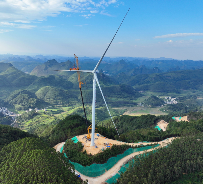 在广西天等把荷风电场项目中,建设者通过无人机三维建模,将原有15.92公里泥结石道路改造为适应6.25MW机组运输的标准路,成功实现首台600吨级风机的安全吊装。