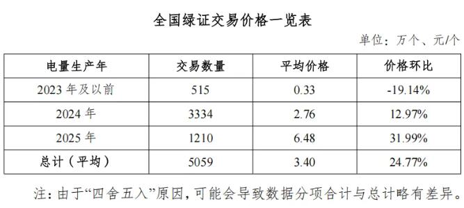 2025年6月,全国单独交易绿证5059万个,交易平均价格为3.40元/个,环比增长24.77%。