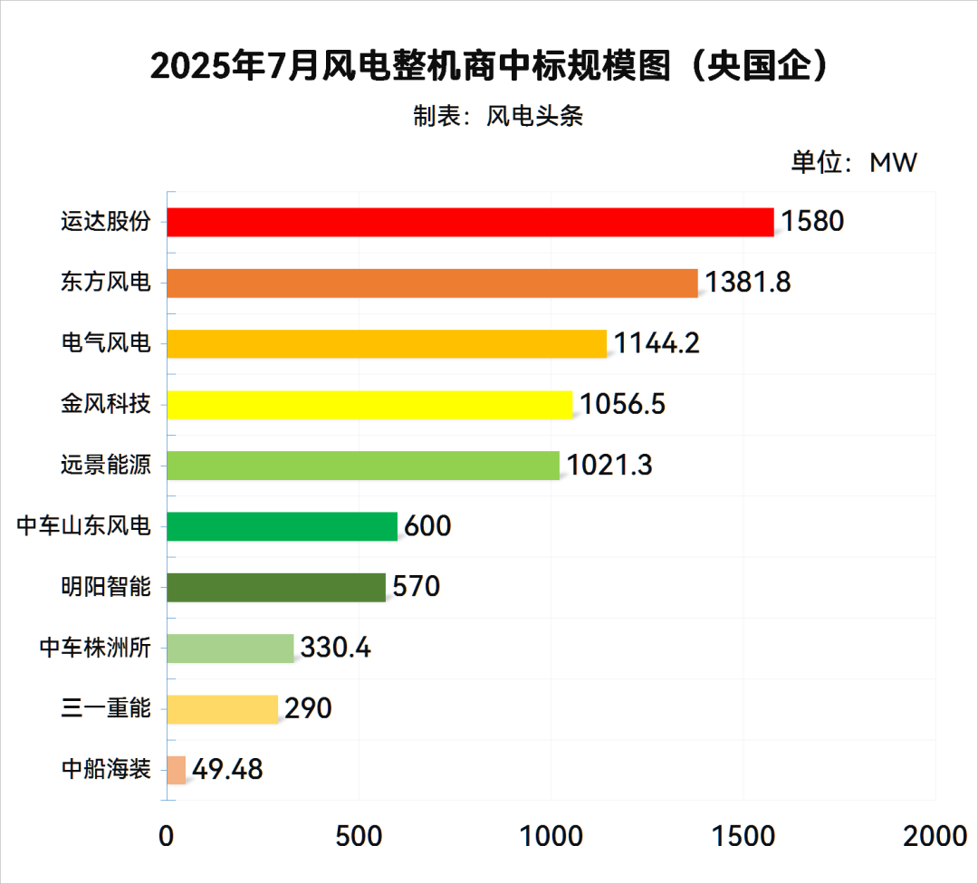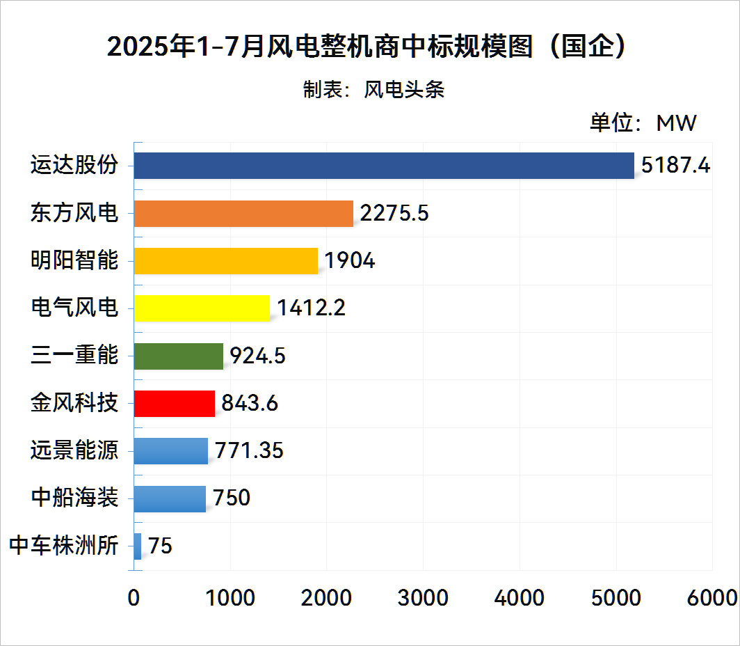 78.01GW!2025年1-7月运达、金风、远景、电气风电、东方风电居前五。