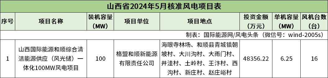 山西核准1个风电项目,总规模100MW,总投资48356.22万元,为陆上风电项目。