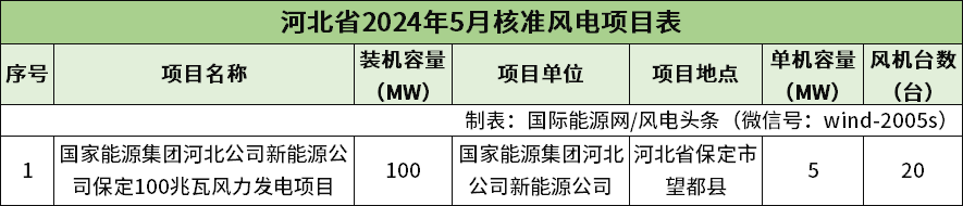 河北核准1个风电项目,总规模100MW,为陆上风电项目。