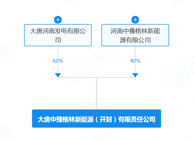 股权穿透图显示,该企业由大唐河南发电有限公司和河南中豫格林新能源有限公司共同持股。其中,大唐河南发电有限公司持股60%。