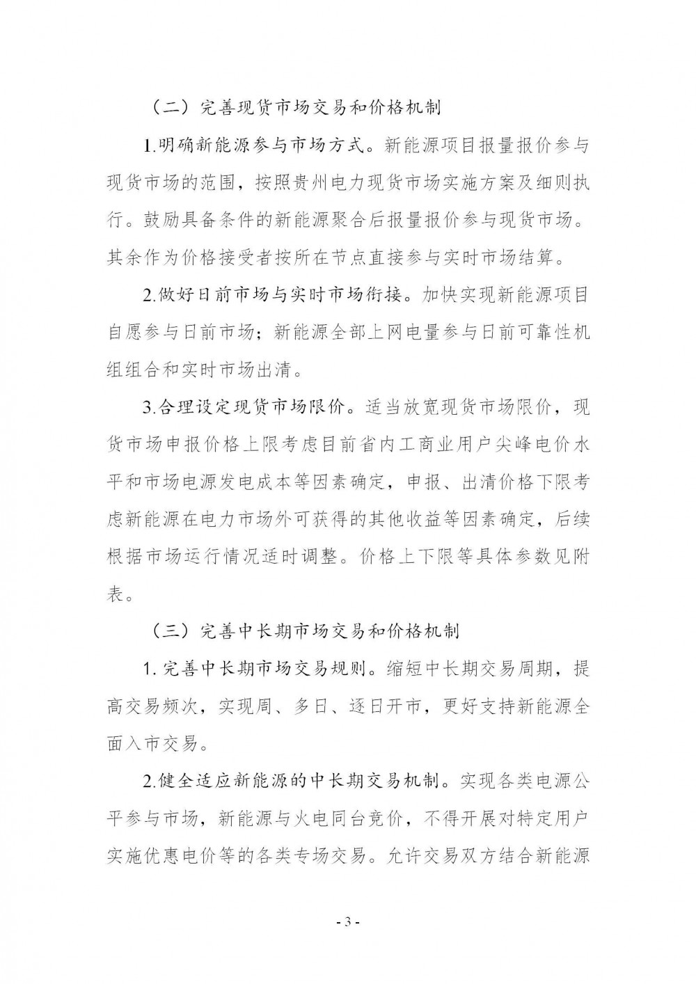 公告显示,新能源项目报量报价参与现货市场的范围,按照贵州电力现货市场实施方案及细则执行。鼓励具备条件的新能源聚合后报量报价参与现货市场。其余作为价格接受者按所在节点直接参与实时市场结算。