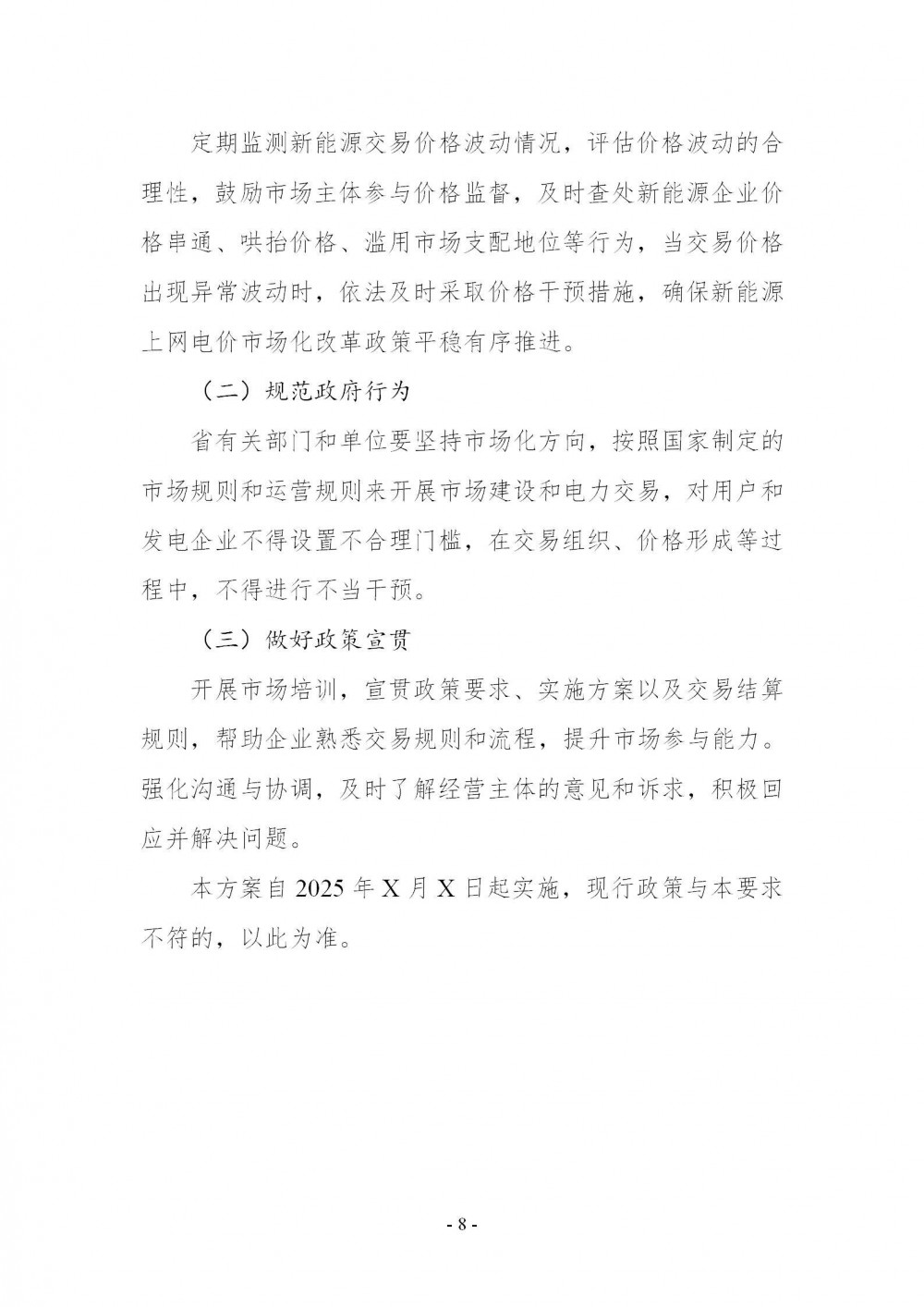 为加快构建新型电力系统、健全绿色低碳发展机制,充分发挥市场在资源配置中的决定性作用,促进新能源高质量发展,根据《国家发展改革委 国家能源局关于深化新能源上网电价市场化改革促进新能源高质量发展的通知》(发改价格〔2025〕136号)要求,结合贵州实际,我委研究起草了《贵州省关于深化新能源上网电价市场化改革实施方案(试行)(征求意见稿)》,现面向社会公开征求意见。