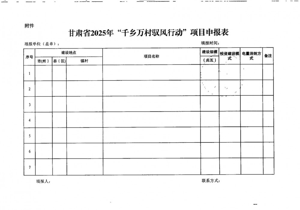 近日,甘肃省能源局发布关于组织申报2025年“千乡万村驭风行动”项目的通知。