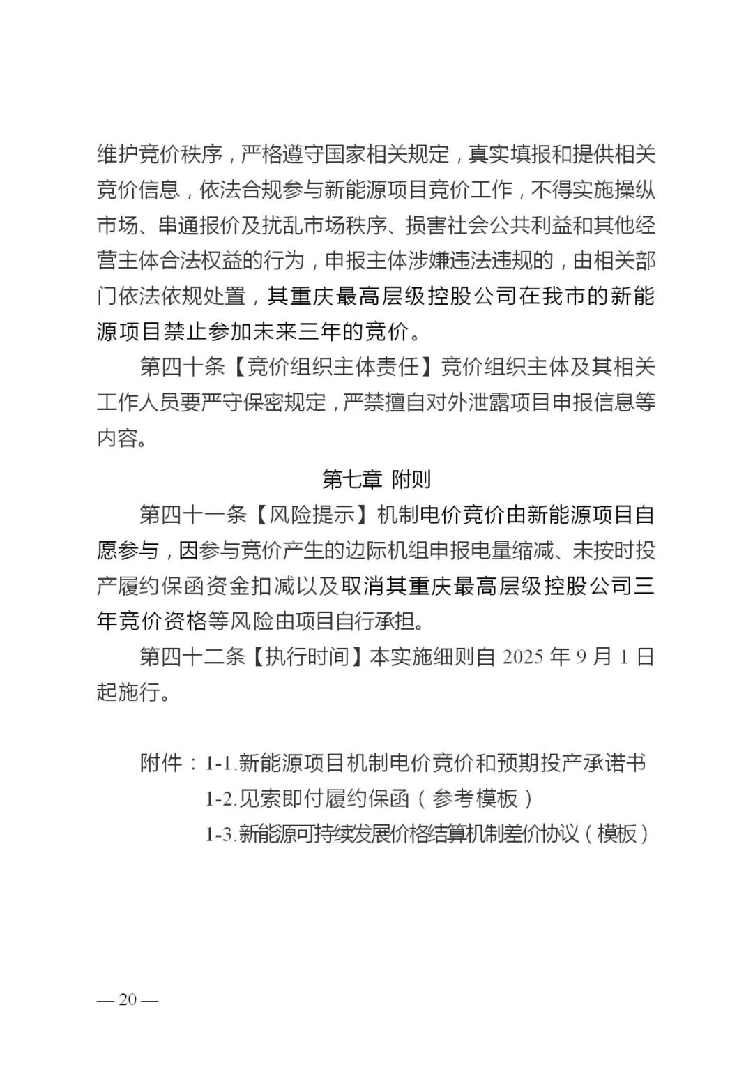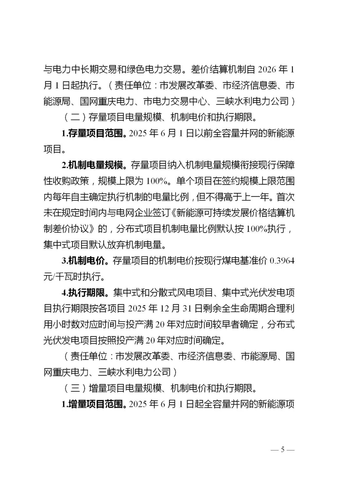 4.执行期限。集中式和分散式风电项目、集中式光伏发电项目执行期限按各项目2025年12月31日剩余全生命周期合理利用小时数对应时间与投产满20年对应时间较早者确定,分布式光伏发电项目按照投产满20年对应时间确定。