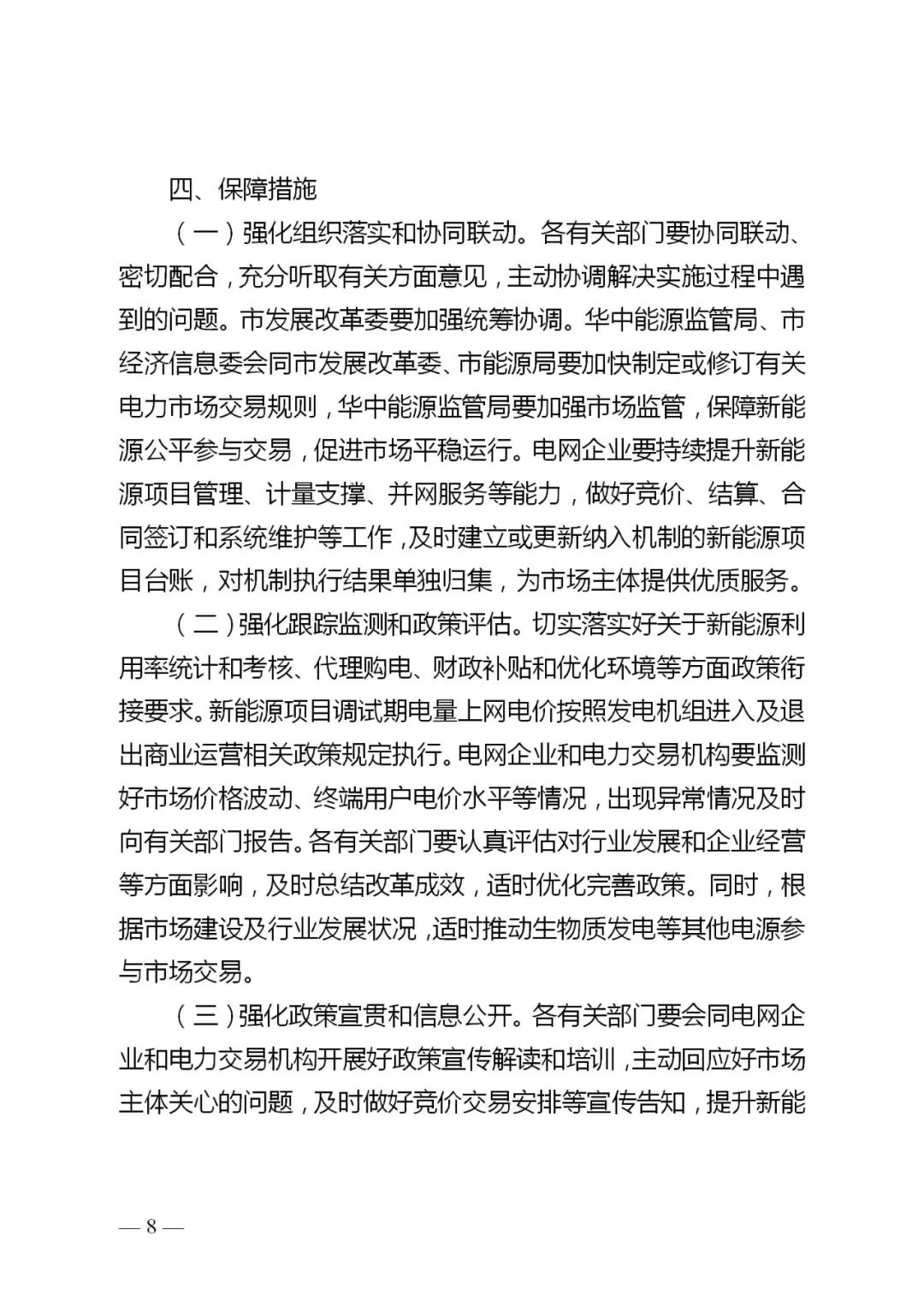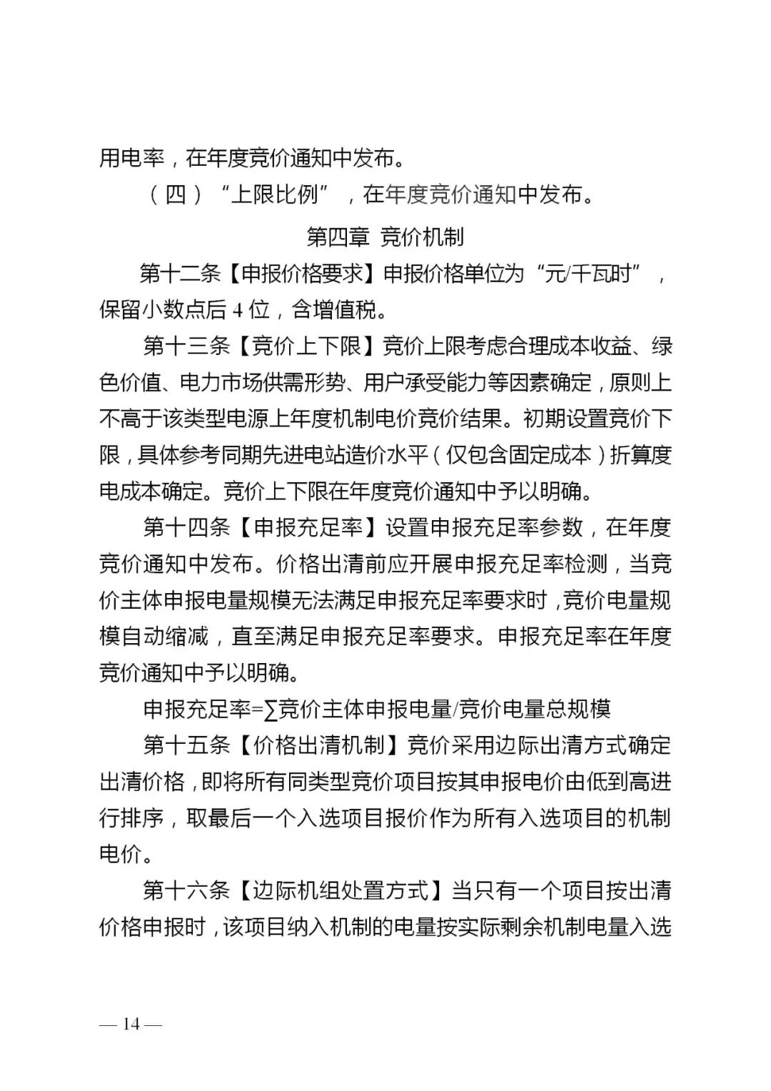 4.电量规模。竞价电量规模根据国家下达的非水可再生能源消纳责任权重完成情况及用户承受能力等因素确定。超出消纳责任权重的,次年纳入机制的电量规模可适当减少;未完成的,次年纳入机制的电量规模可适当增加。第一年纳入机制的电量占增量项目新能源上网电量的比例,与我市现有新能源非市场化比例适当衔接,单个项目申请纳入机制的电量占其全部上网电量的比例应低于100%,具体比例在每年的竞价通知中明确。