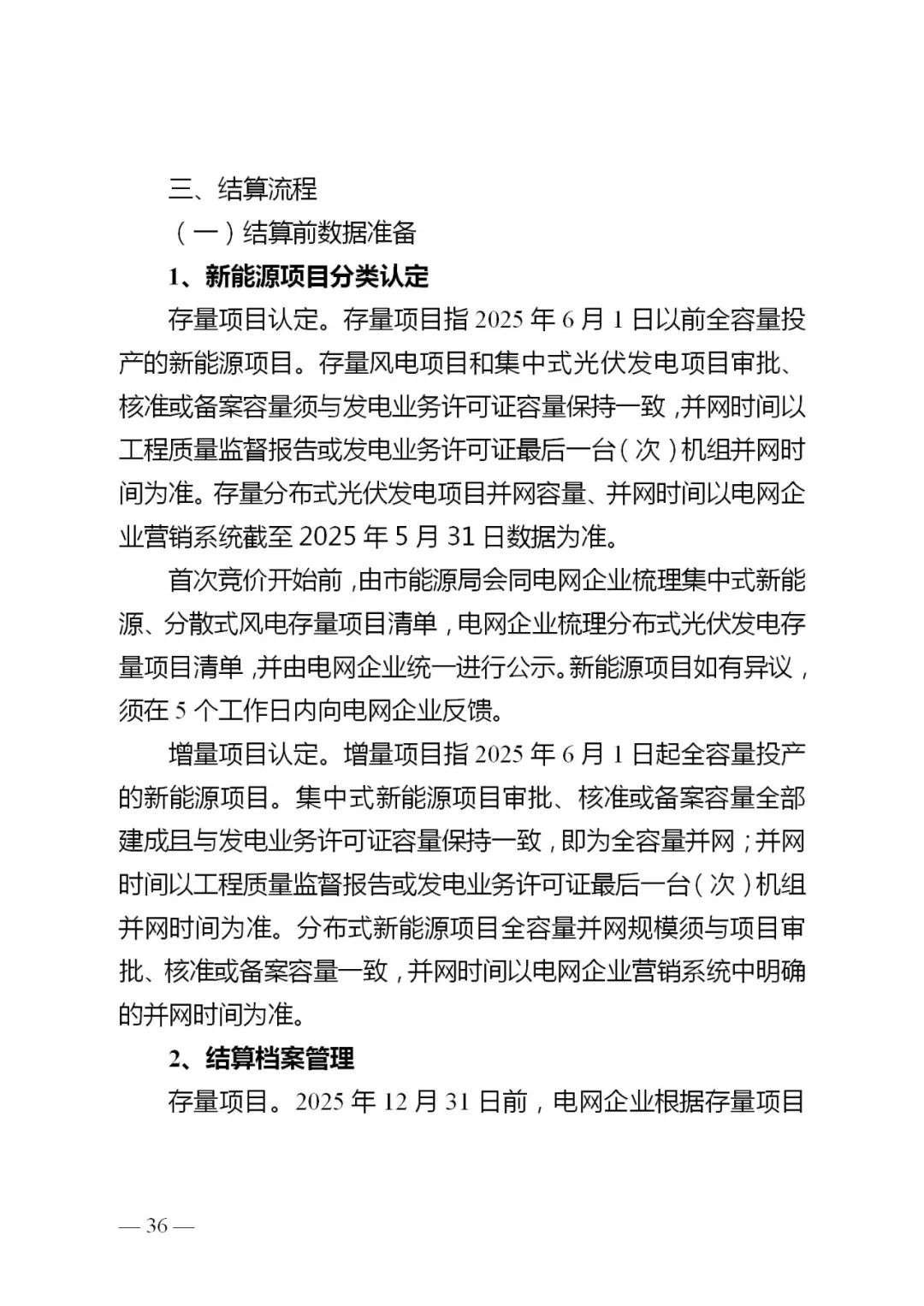 1.存量项目范围。2025年6月1日以前全容量并网的新能源项目。