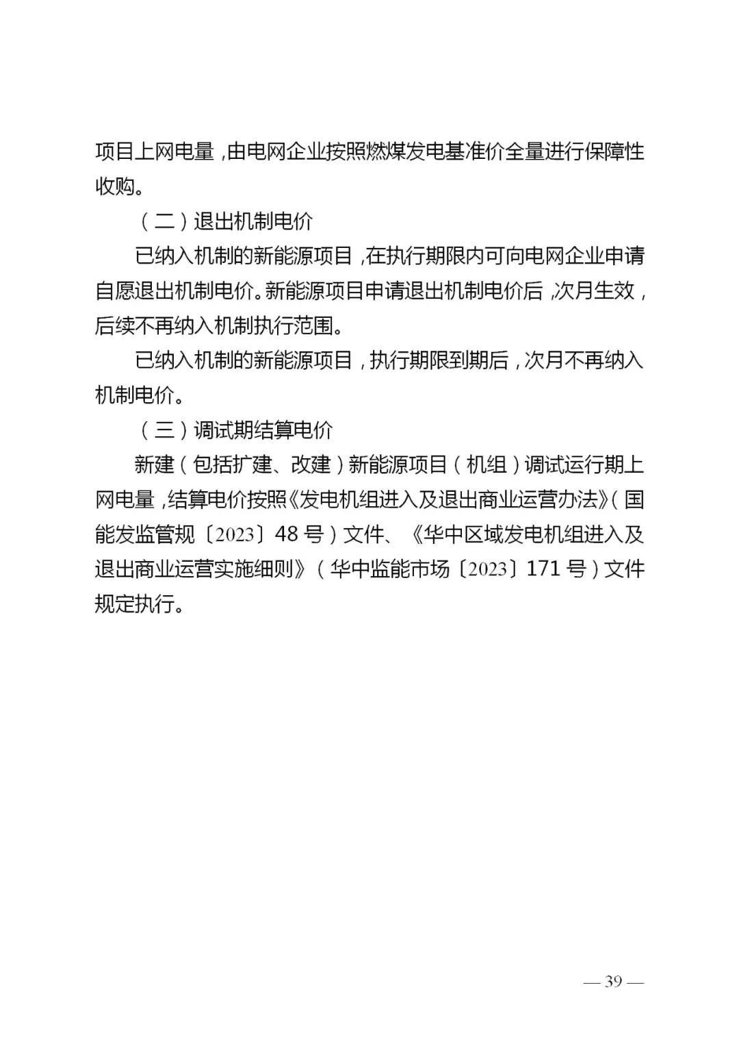 3.机制电价。存量项目的机制电价按现行煤电基准价0.3964元/千瓦时执行。