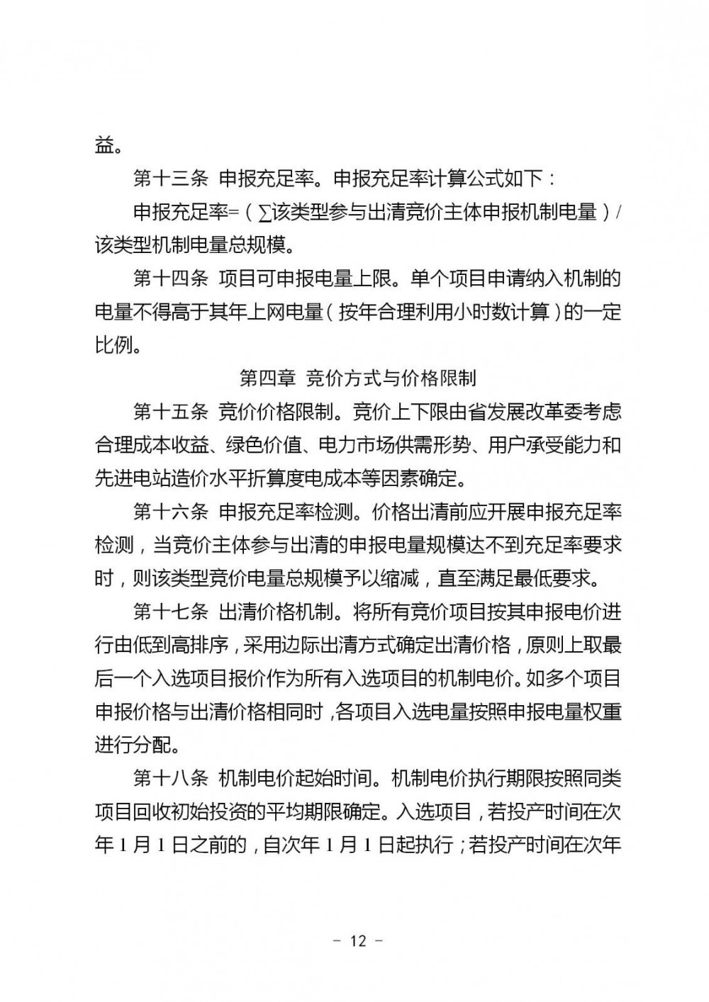 出清价格机制。将所有竞价项目按其申报电价进行由低到高排序,采用边际出清方式确定出清价格,原则上取最后一个入选项目报价作为所有入选项目的机制电价。如多个项目申报价格与出清价格相同时,各项目入选电量按照申报电量权重进行分配。