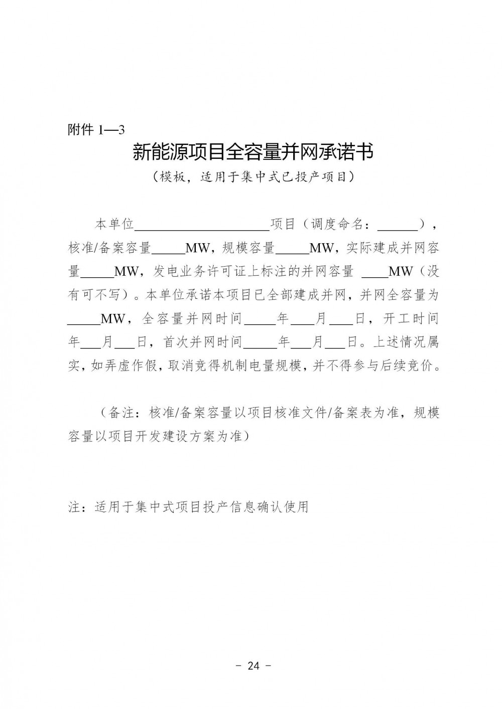 增量项目:2025年6月1日起投产的新能源项目