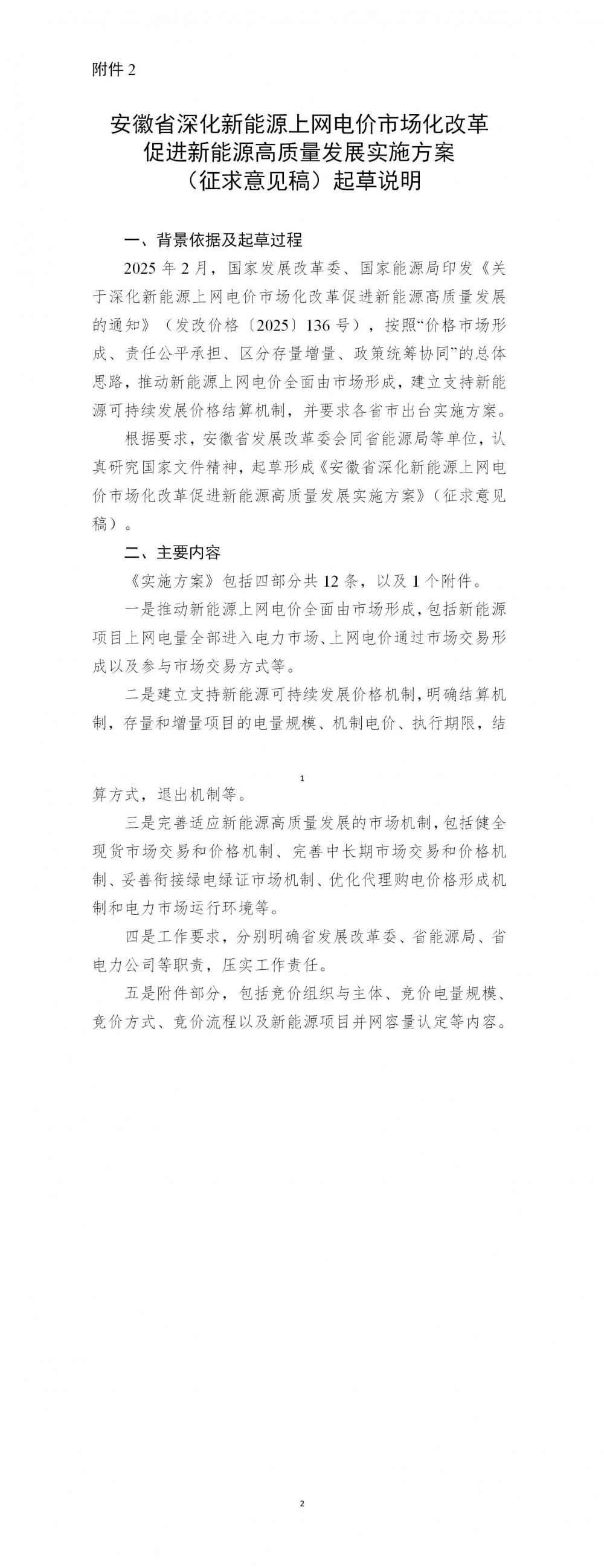 2.安徽省深化新能源上网电价市场化改革促进新能源高质量发展实施方案(征求意见稿)起草说明