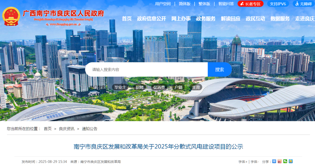 南宁市良庆区发展和改革局关于2025年分散式风电建设项目的公示