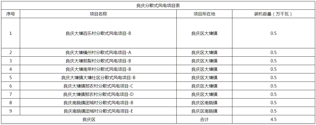 广西南宁市良庆区拟建设良庆大塘百乐村分散式风电项目-B等9个项目,总容量45MW,已纳入《南宁市分散式风电规划项目清单》。