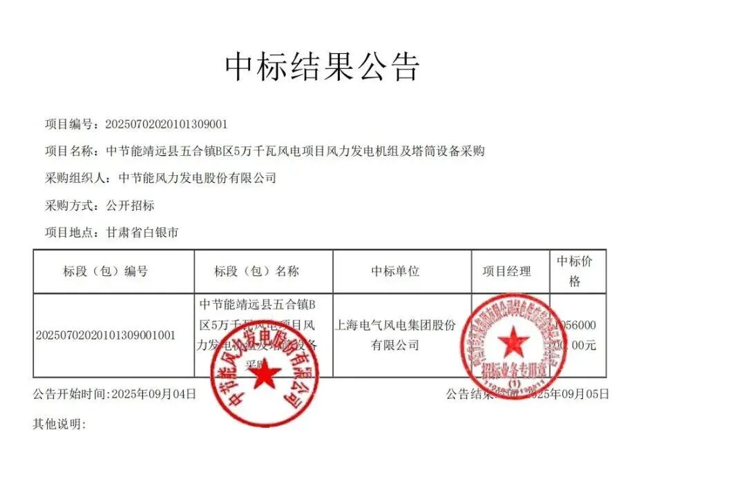 新能源圈获悉,9月4日,中节能电子商务平台发布5条中标信息。金风科技、中车株洲所、运达股份和电气风电分别中标。