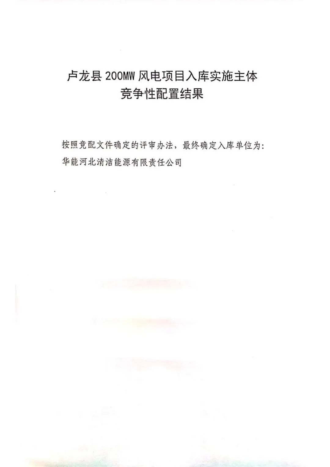 新能源圈获悉,9月5日,河北卢龙县200MW风电入库项目竞争性配置结果公示。