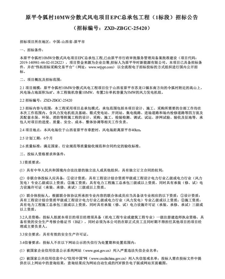 新能源圈获悉,9月18-19日,中国招标投标公共服务平台发布两个风电EPC项目招标。