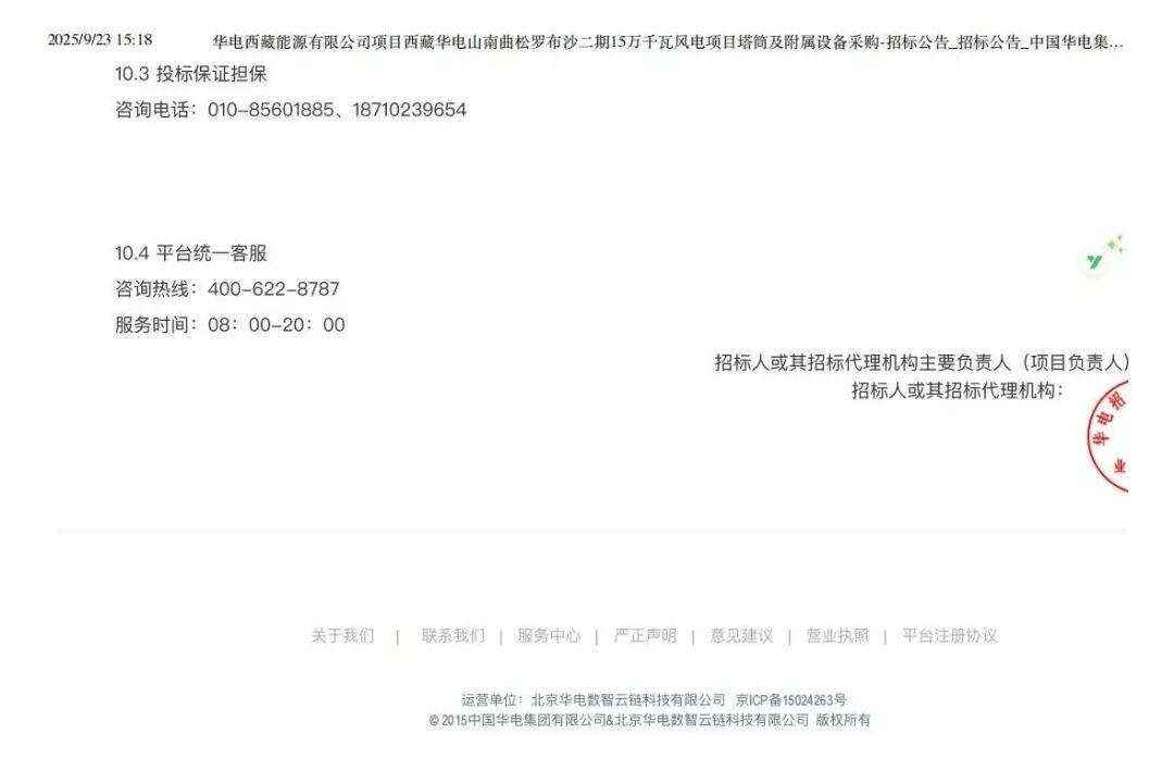 2024-04-30 9月23日新能源圈获悉,华电集团电子商务平台发布西藏华电山南曲松罗布沙二期15万千瓦风电项目塔筒及附属设备采购-招标公告。