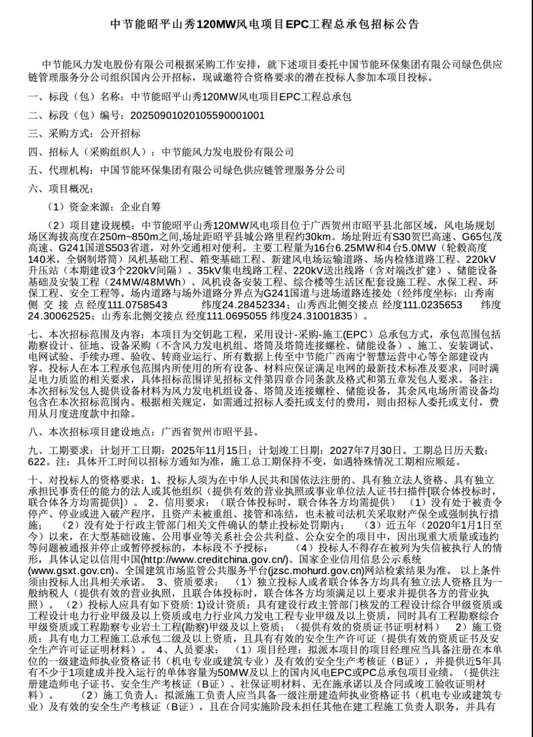 新能源圈获悉,9月25日-26日,中国招标投标电子商务平台发布了6个风电EPC招标信息。6个项目合计规模1092.5MW,涉及风机数量142台,风机单机规模从5MW-10MW之间。