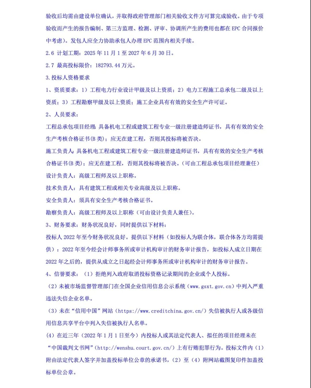 6个项目中,有4个项目允许联合体中标,只有蛟河市白石山镇中深层地热供暖示范项目及配套135兆瓦风电项目EPC总承包工程和闽宁““绿电小镇”风电项目EPC总承包招标不允许联合体中标。