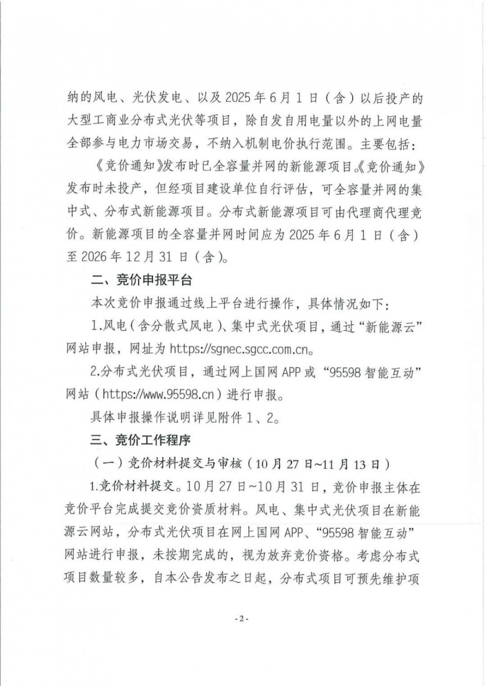 文件明确,竞价申报主体为2025年6月1日(含)至2026年12月31日(含)全容量并网的集中式、分布式新能源项目。