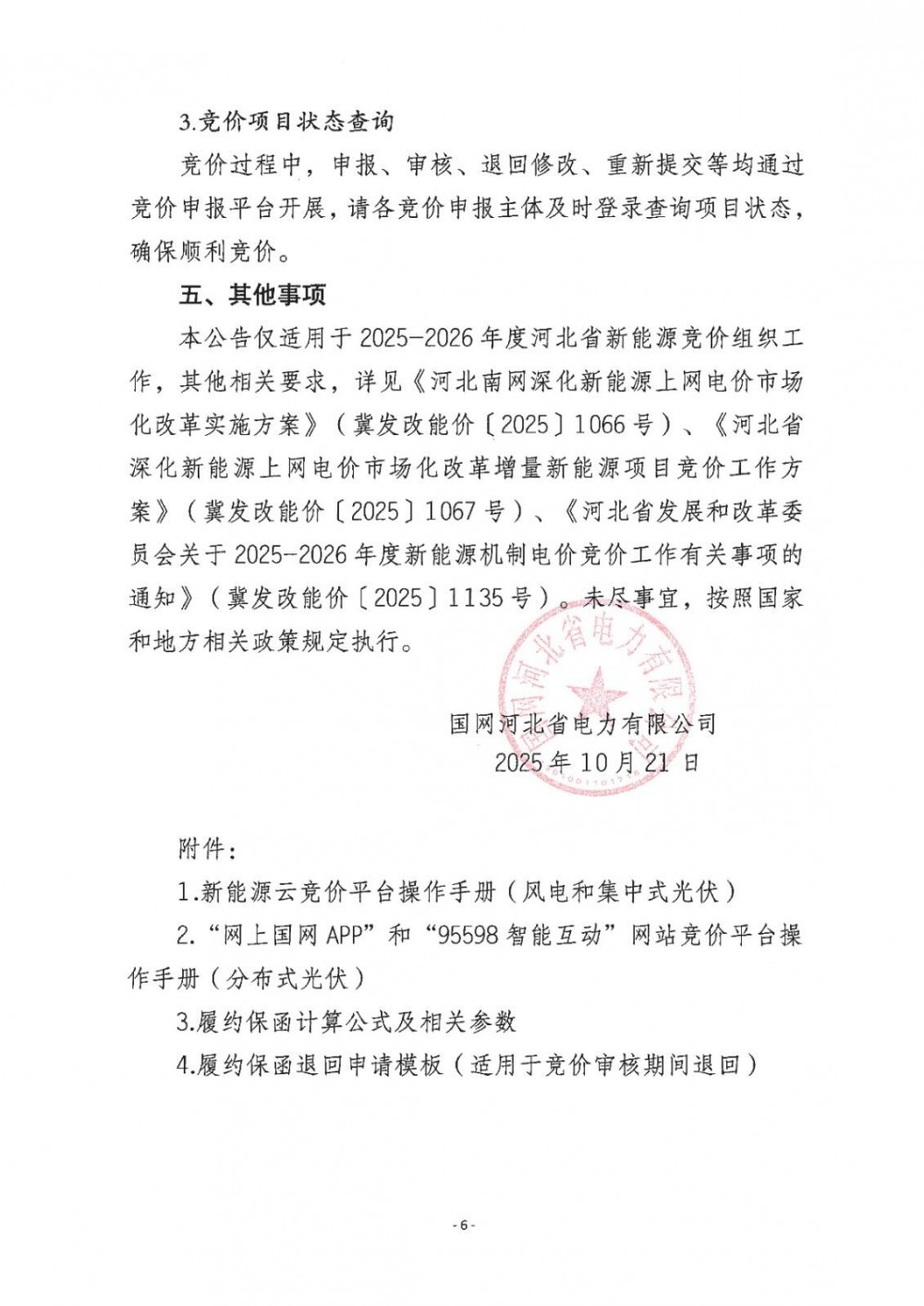 10月21日,国网新能源云发布《河北南网2025-2026年度新能源机制电价竞价组织公告》。