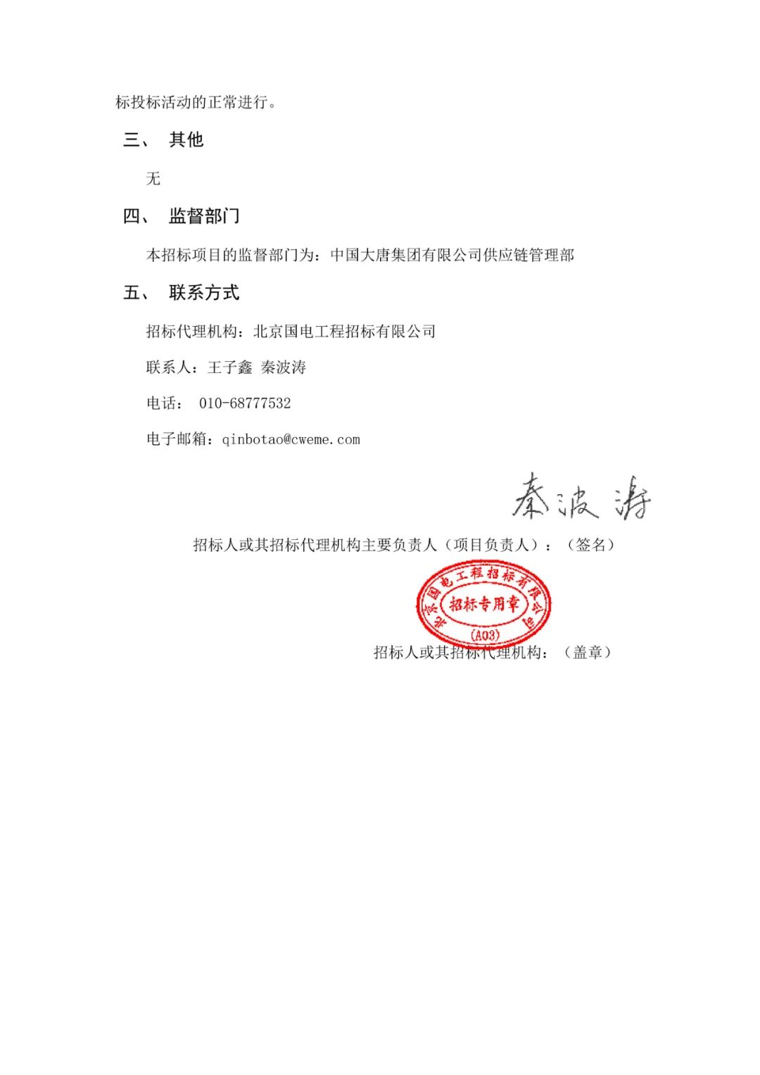 来源:大唐集团电子商务平台