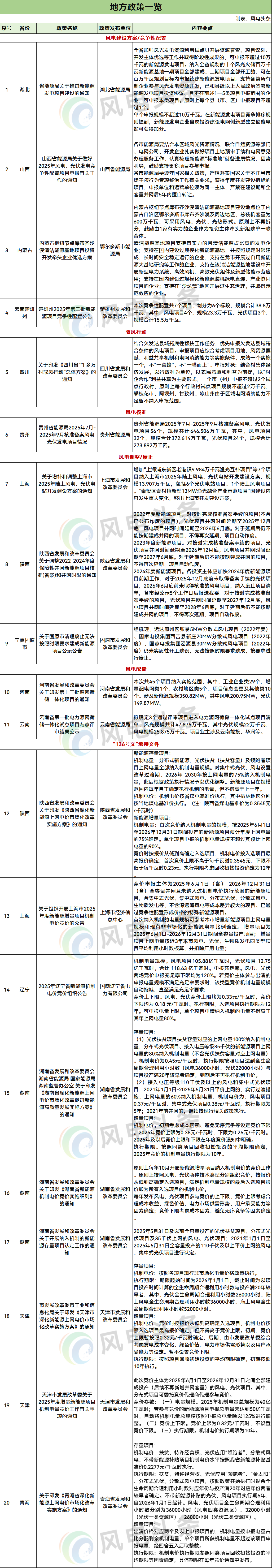 上海、陕西等3个地方下发相关文件。上海发布关于增补和调整2025年陆上风电、光伏电站开发建设方案的通知;陕西发布关于调整2022-2024年度保障性并网新能源项目核准(备案)和并网时限的通知;宁夏固原市废止55MW风电项目。