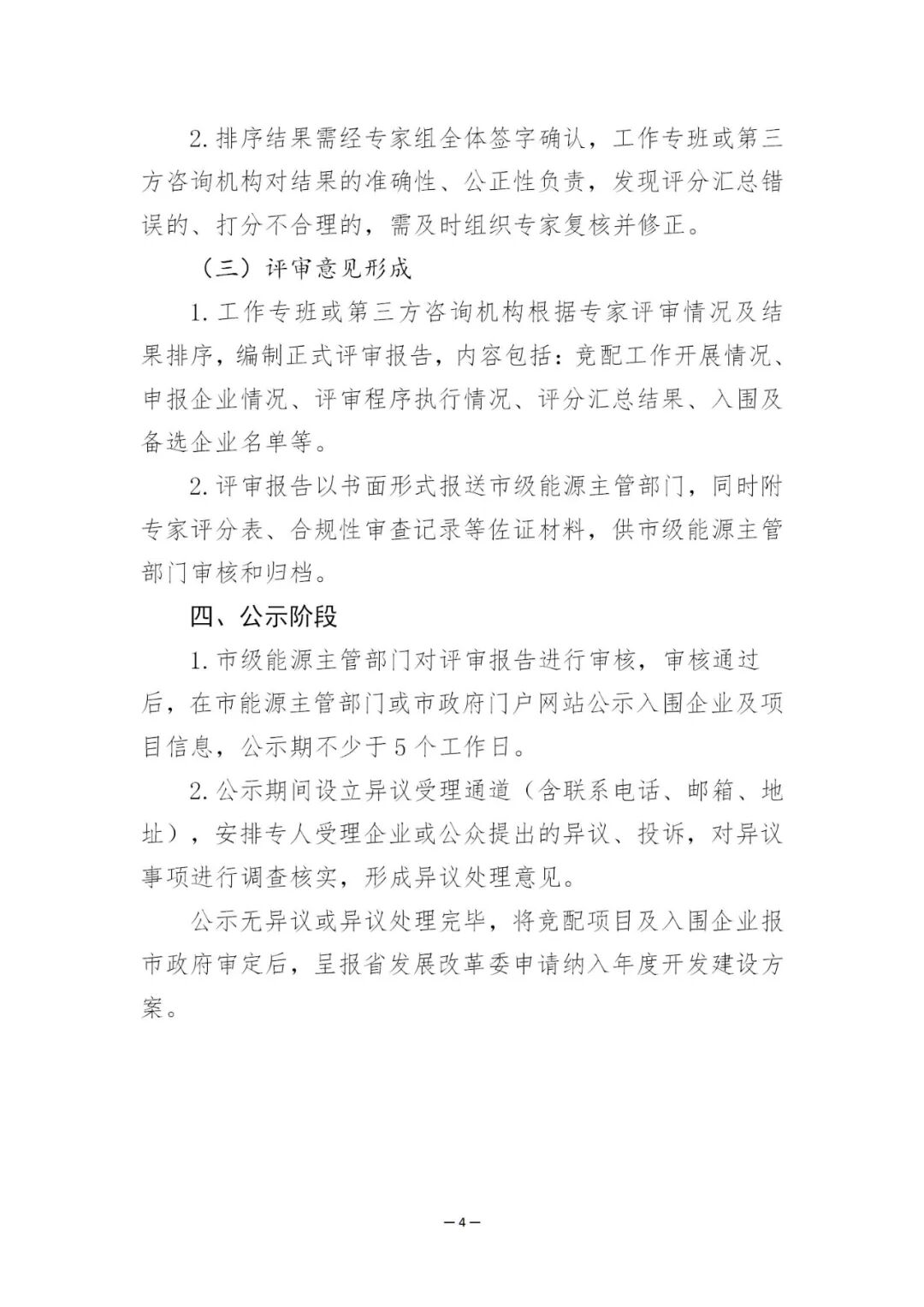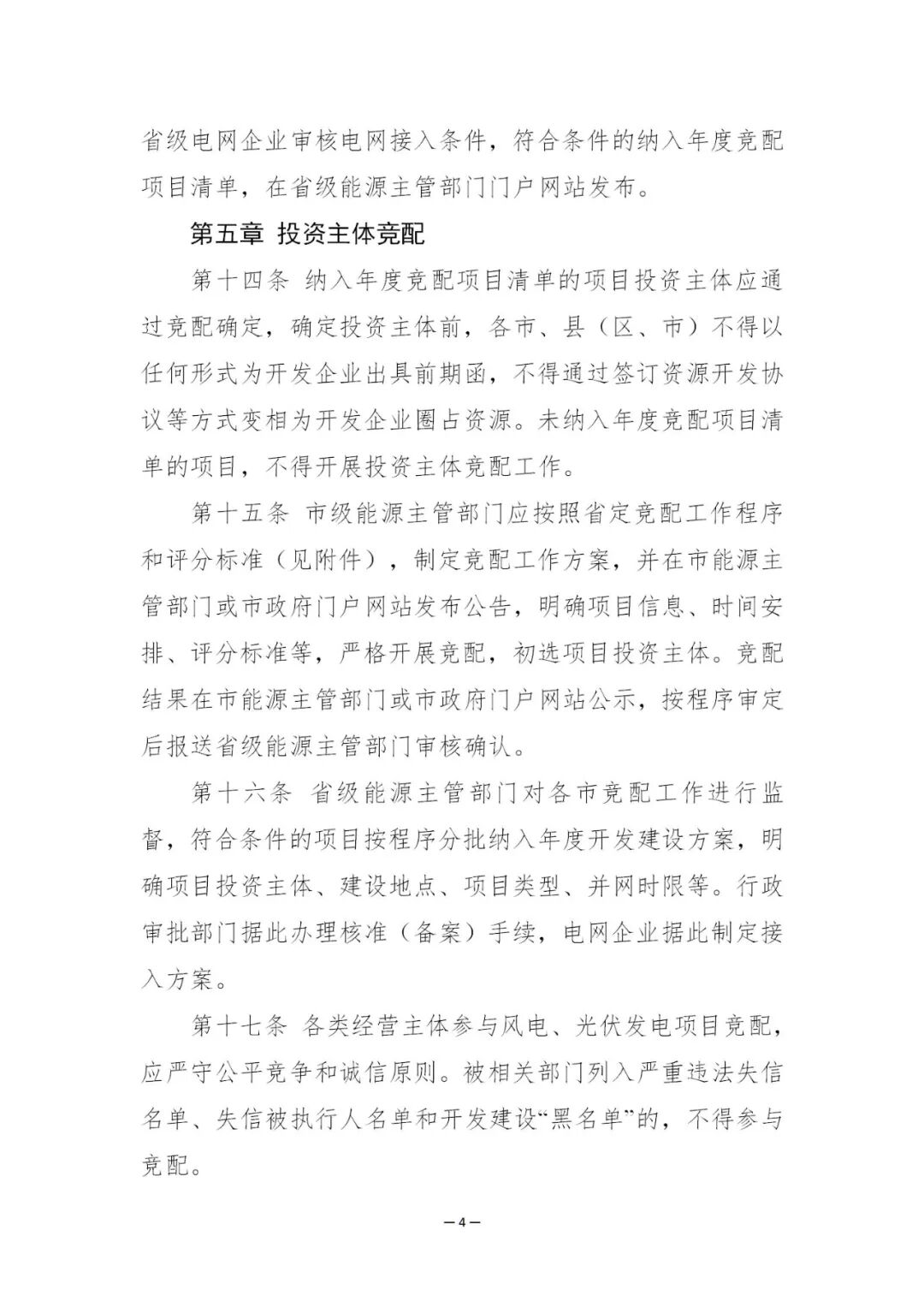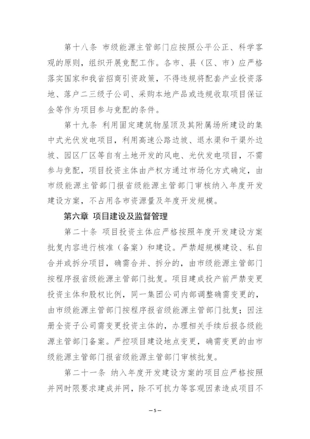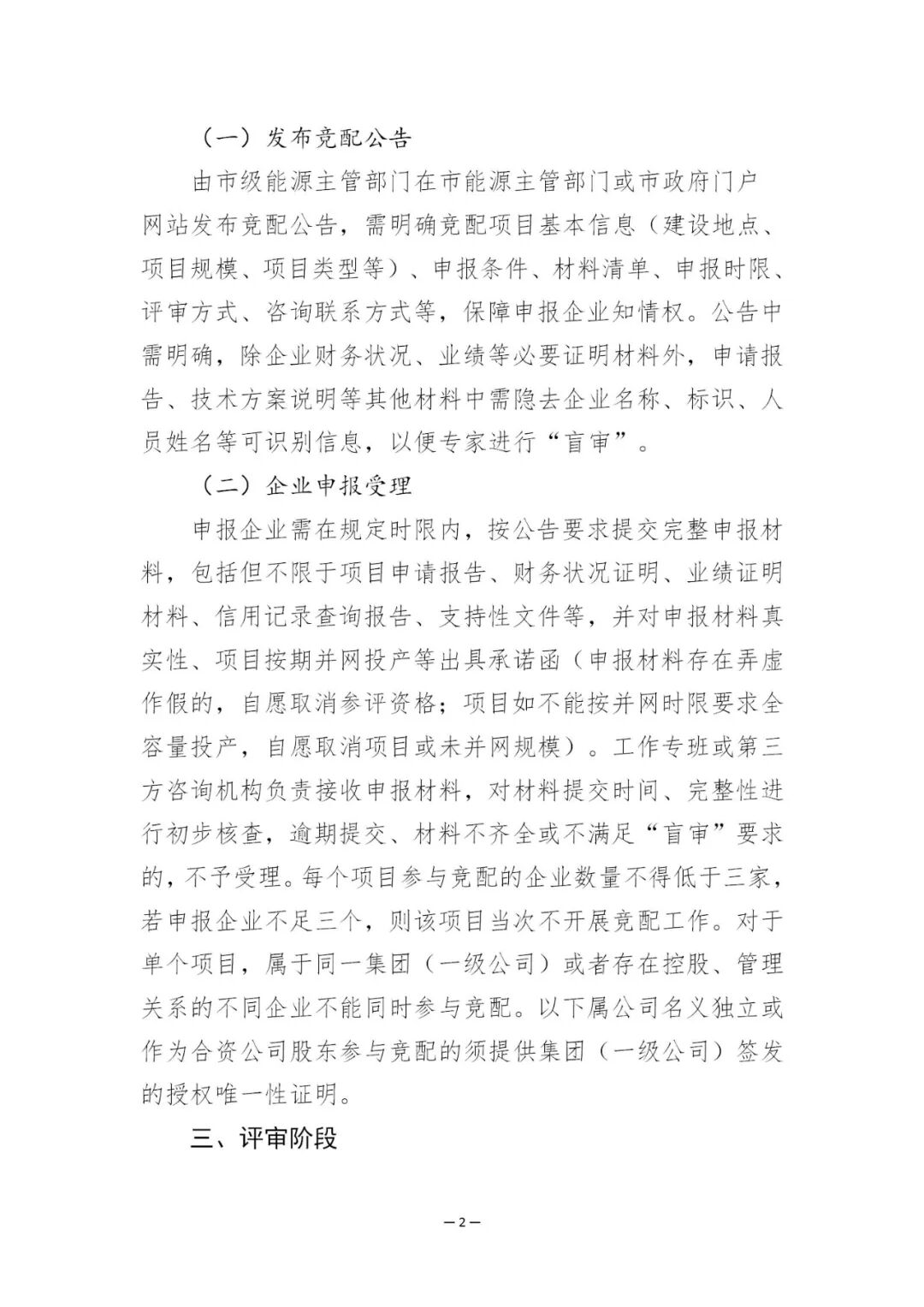 市级能源主管部门应按照公平公正、科学客观的原则,组织开展竞配工作。各市、县(区、市)应严格落实国家和我省招商引资政策,不得违规将配套产业投资落地、落户二三级子公司、采购本地产品或违规收取项目保证金等作为项目参与竞配的条件。