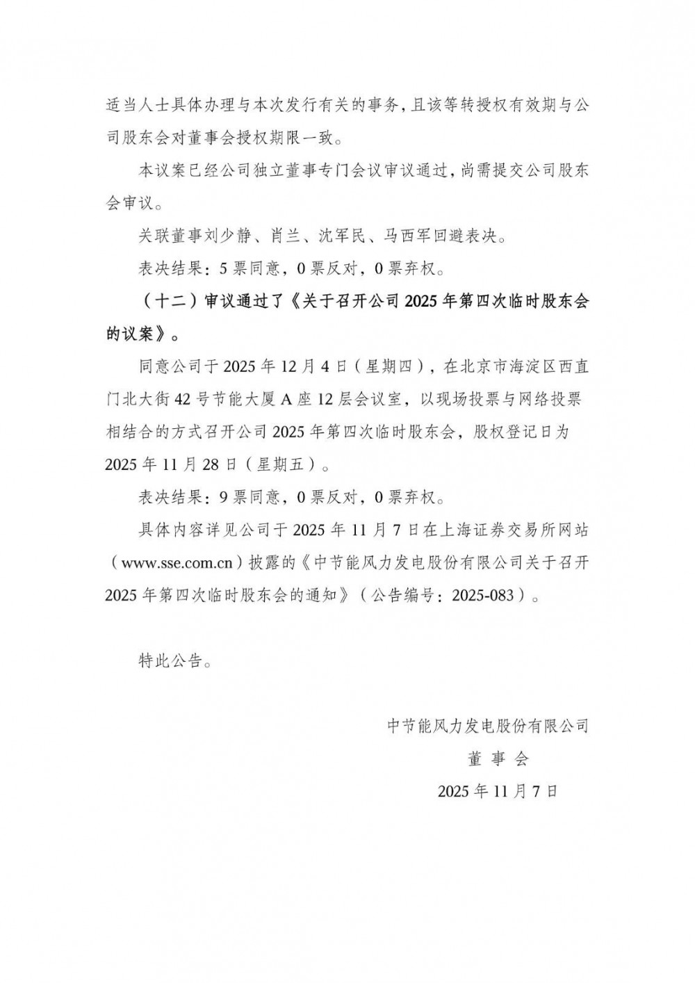 近日,中节能风力发电股份有限公司发布第六届董事会第四次会议决议公告。