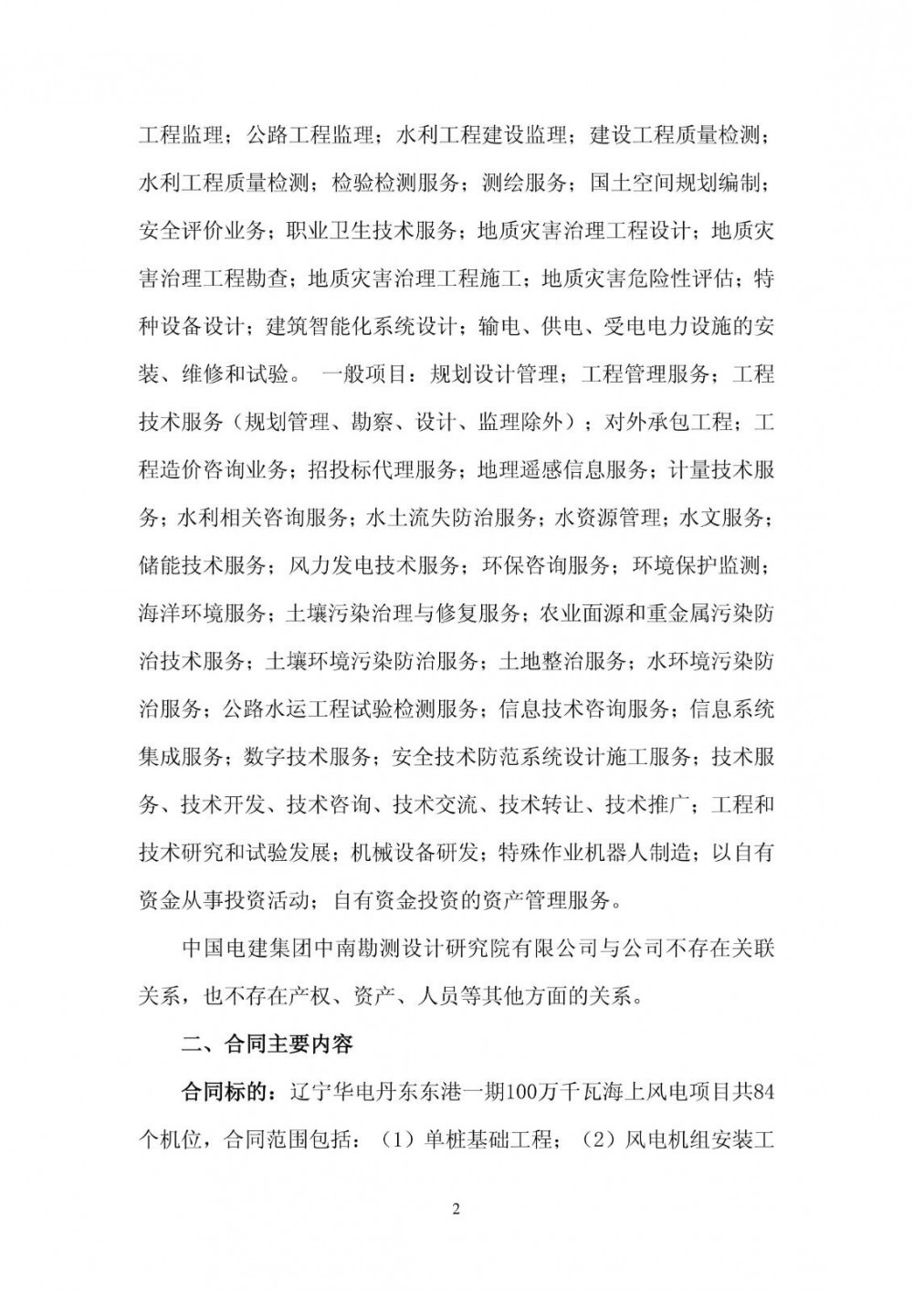 公告显示,近日,华电科工股份有限公司作为联合体牵头人协同江苏亨通高压海缆有限公司等3家联合体成员与中国电建集团中南勘测设计研究院有限公司签署了《辽宁华电丹东东港一期100万千瓦海上风电项目基础建造施工及风机安装、海缆采购及敷设工程合同》,总合同金额约为341,533.88万元人民币(含税)。