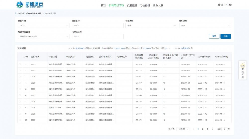 新能源圈获悉,11月12日,新能源云公示青海首批增量竞价结果。
