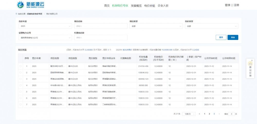 此外,10月29日,国网新能源云发布关于2025年下半年青海省新能源增量项目机制电价竞价工作的补充通知。
