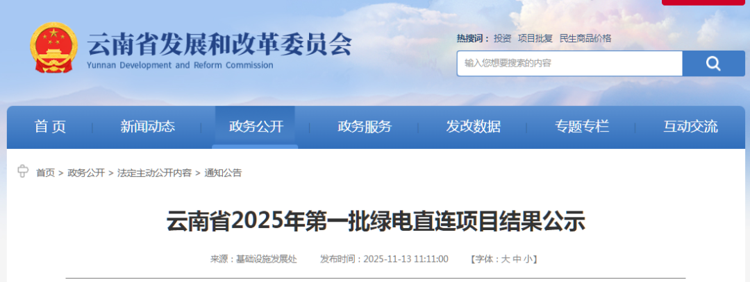 新能源圈获悉,11月13日,云南发改委发布云南省2025年第一批绿电直连项目结果公示。
